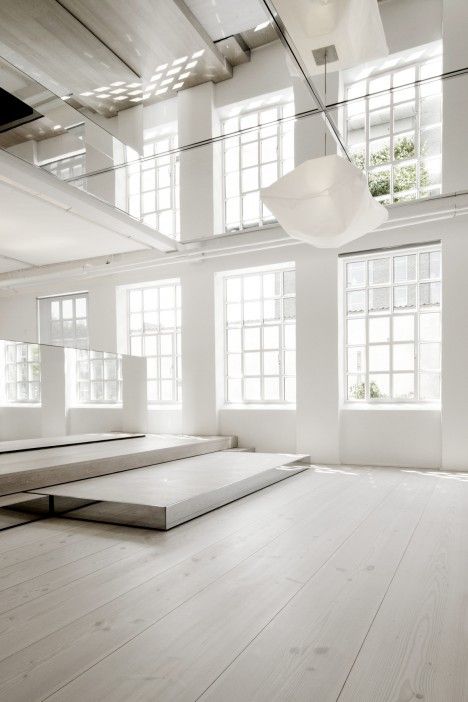 Здесь мне очень нравится сочетание минимализма с таким обработанным антиком. Старый, зашкуренный, выбеленный пол, стена из старых досок и идеальный белый потолок.