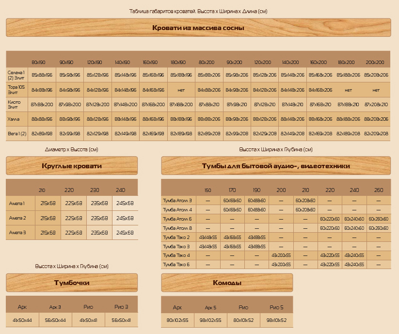 По размерам такие кровати отличаются незначительно, поэтому с выбором проблем не будет. В России популярны кровати четырех размеров – односпальные, двуспальные, полуторки и кинг-сайз. Особняком стоят кроватки для детей, которые могут иметь значительные отличия в зависимости от возраста ребенка.
