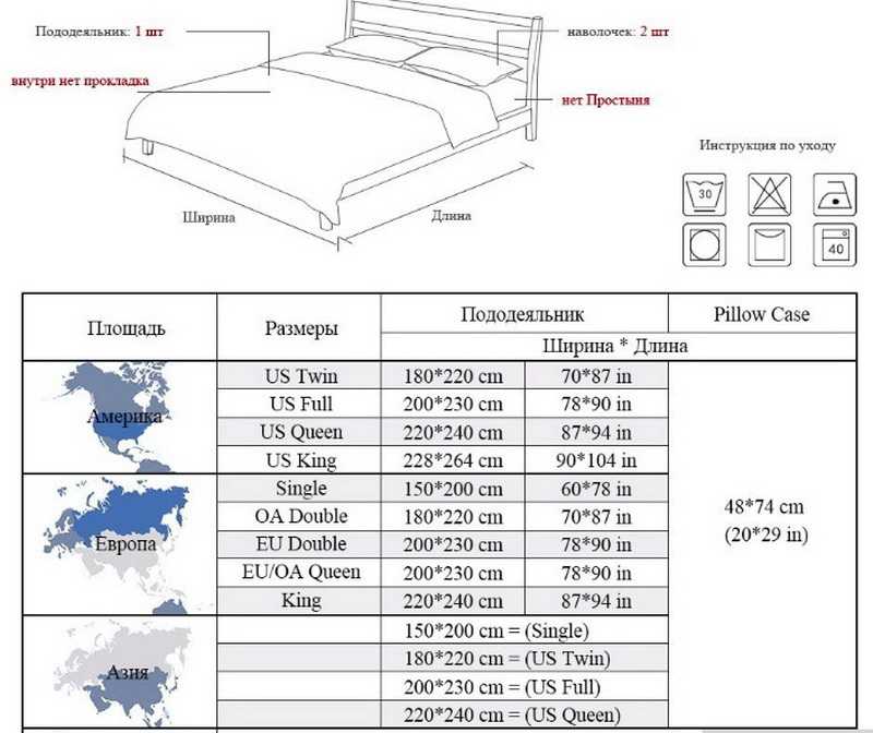 При выборе постели можно ориентироваться как на российские, так и европейские/американские стандарты.