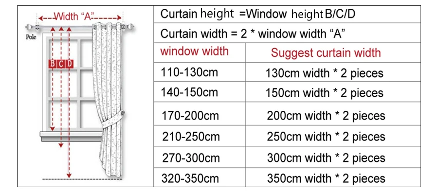 Для большей ширины, чем стандартные 45 дюймов или 114 сантиметров, есть шторы шириной 63 дюйма или 160 сантиметров и 84 дюйма или 213 сантиметров. Если у вас еще более широкое окно или панорамное окно, лучше обрамить их оконными шторами шириной 95 дюймов или 241 сантиметр.