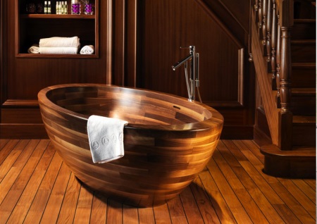 К примеру, очень востребованными стали деревянные модели, изготовленные из цельного куска дуба. Размер таких необычных моделей полностью индивидуален, так как они выполняются исключительно по заказам клиентов. Дубовые ванны стремительно набрали популярность, поскольку материал обладает оздоровительными свойствами, а сама ванна придает интерьеру неповторимый стиль.