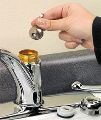- Простым движением вверх извлечь из смесителя шар и осмотреть его. Если его покрытие повреждено, то шар придется заменить. Загрязненный шар хорошо промывается.
