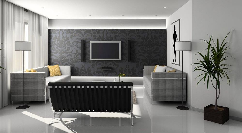 Орнамент. Просторную гостиную украсят обои с крупным цветочным орнаментом, геометрическими узорами. Миниатюрная комната для отдыха оформляется серо-белыми обоями гладкой текстуры.