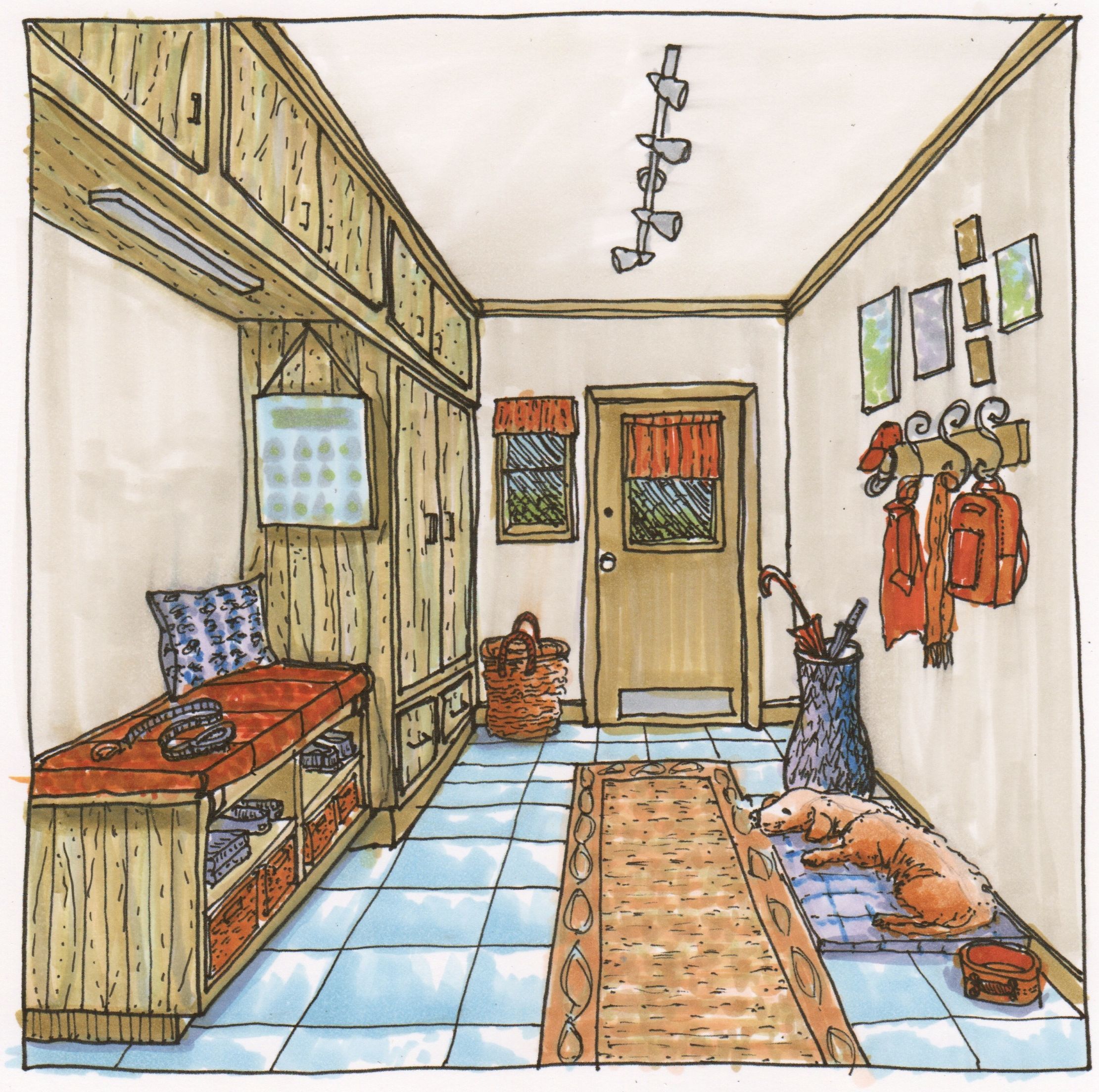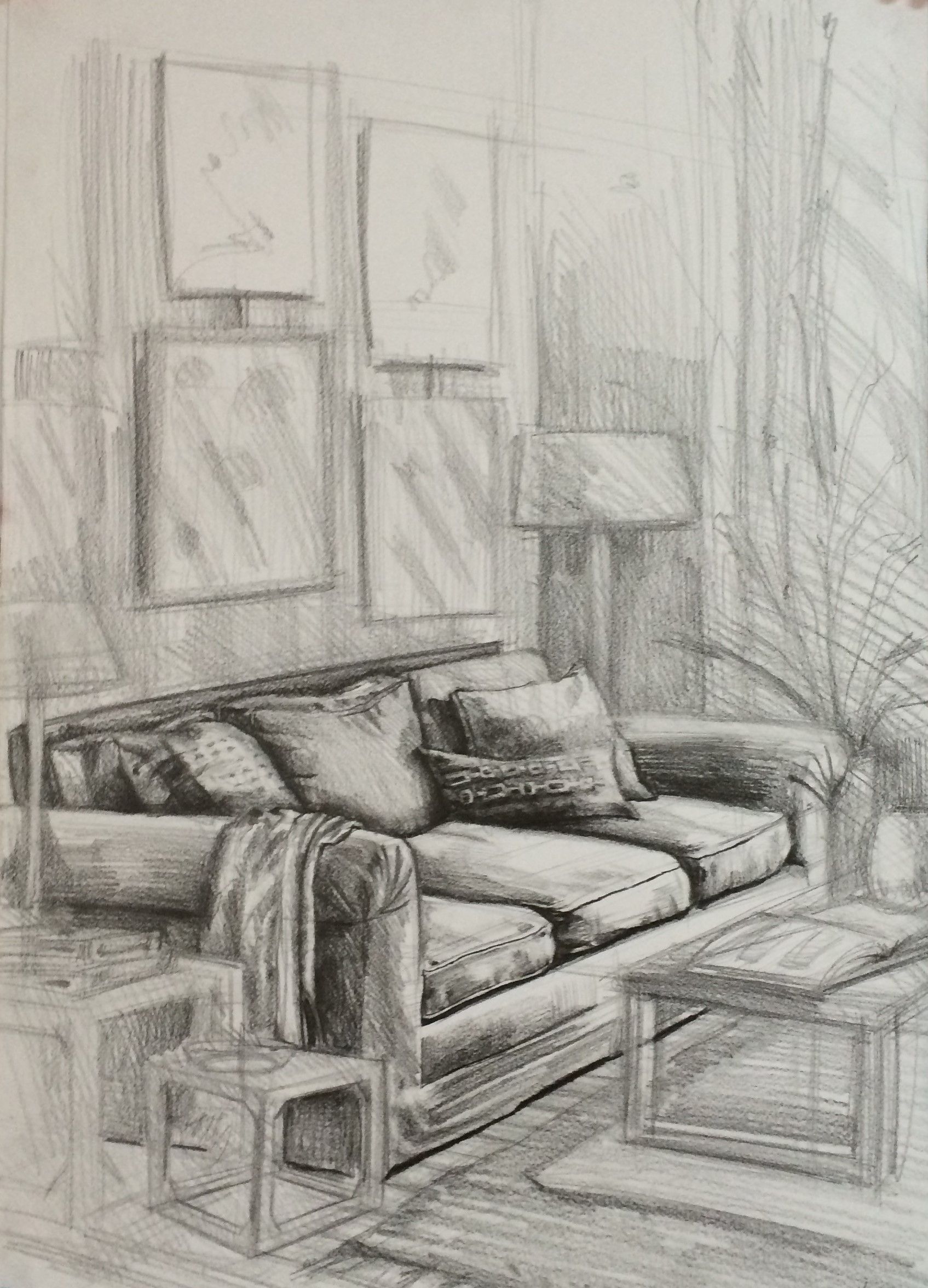 интерьер 1, цветной карандаш, акрил, бумага, 16 дюймов x 12 дюймов