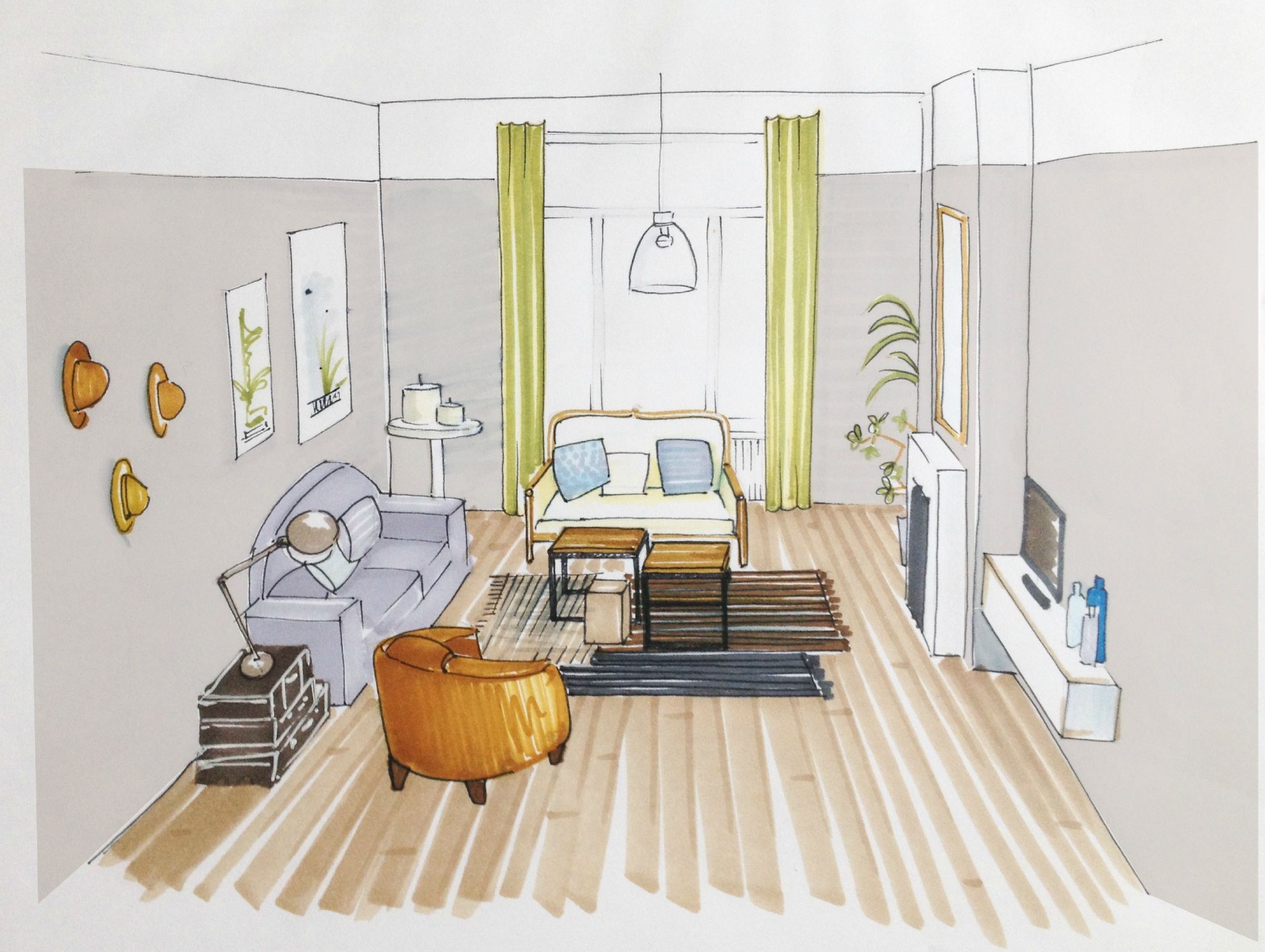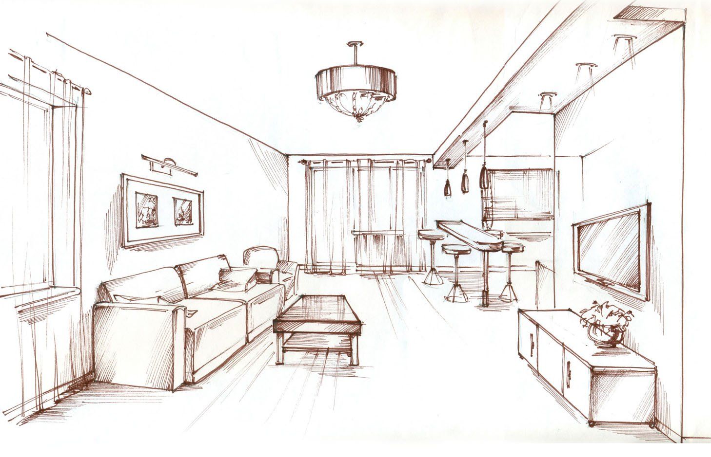 Рисование в перспективе — это техника изображения трехмерных объемов и пространственных отношений на основе уровня глаз и точки (или точек) схода наблюдателя.Это может дать реалистичное представление о том, как объем или пространство будут выглядеть в реальности.
