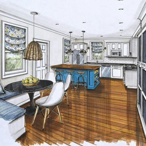 byЕсли в том же интерьере использовать овальные или круглые формы рисунков, то угловатые предметы на контрасте станут выразительнее (акцентнее), а общий вид интерьера гармоничнее и спокойнее: