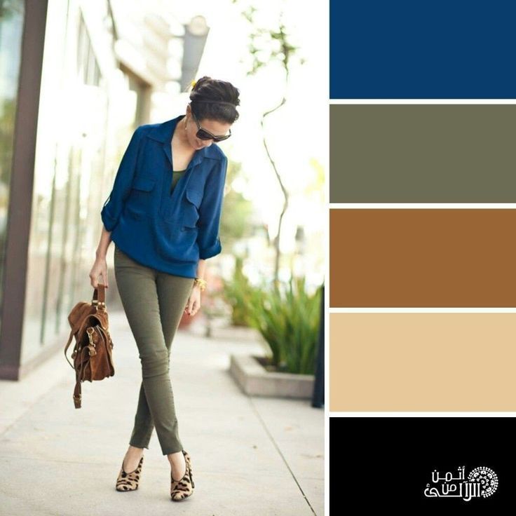 Например, если вы носите оливково-зеленые брюки, вы можете найти топ с цветочным принтом персикового или розового цвета.