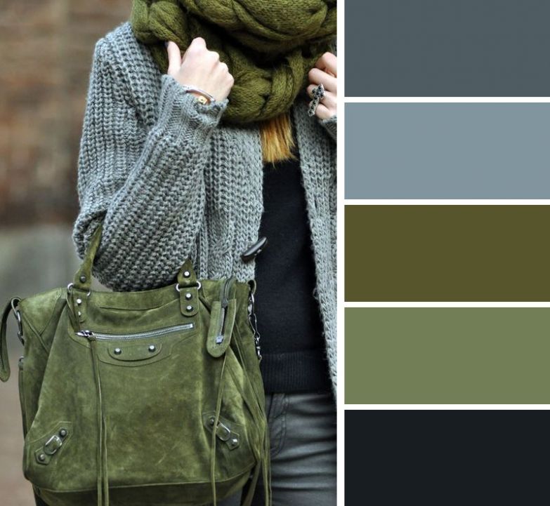 Источник изображения: PinterestЕсли вы хотите создать что-то шикарное, элегантное и очень простое, вам следует сочетать оливково-зеленый цвет с серой одеждой и аксессуарами.