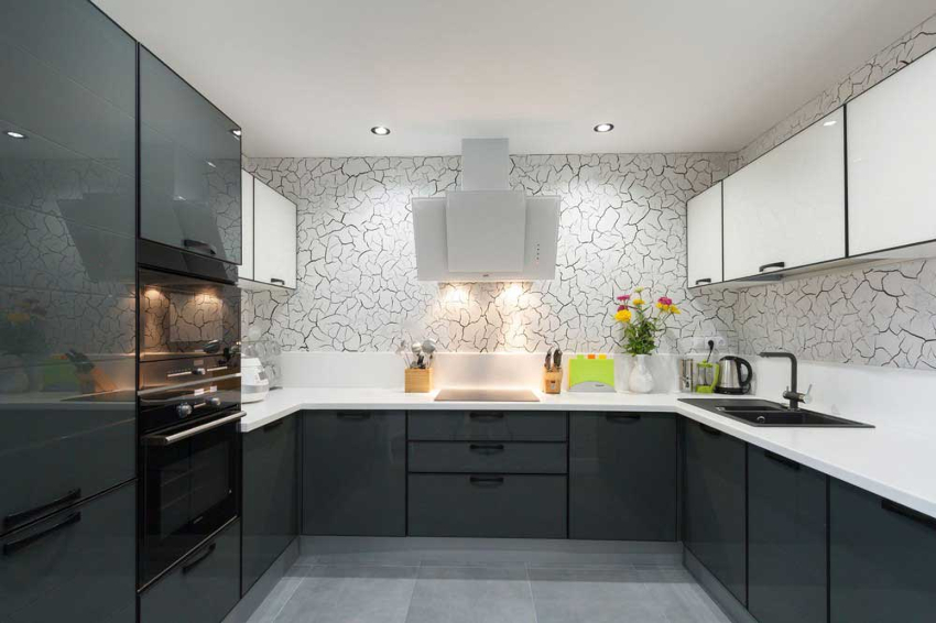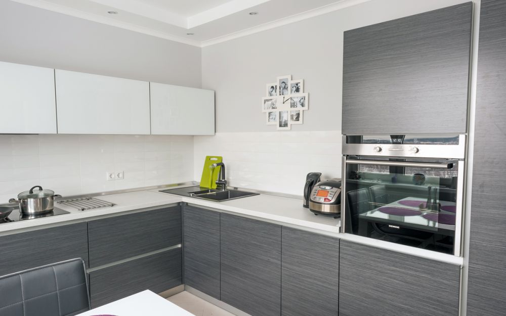 Белая кухня с серой столешницей или наоборот? А может стоит добавить третий цвет? Поскольку вариантов оформления фартука значительно больше, выбирать стоит именно со столешницы.