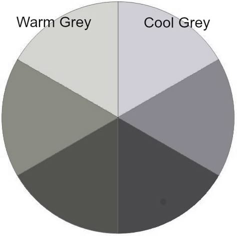 Так как многие цвета серой краски могут казаться холодными из-за их синего или фиолетового оттенка, серая краска с бежевым, желтым или красным оттенком считается «теплым серым».