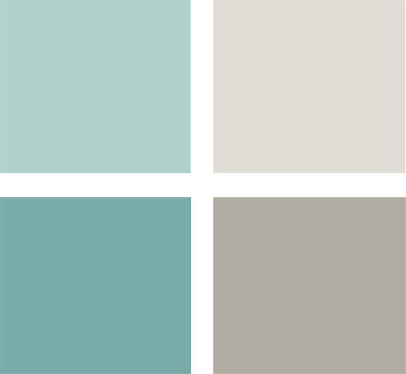 - Внизу Слева — серо-голубой: Benjamin Moore Stonington Grey
