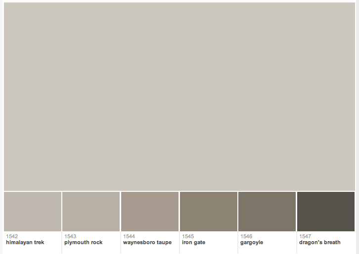 - Внизу справа — Greige: Benjamin Moore Revere Pewter.