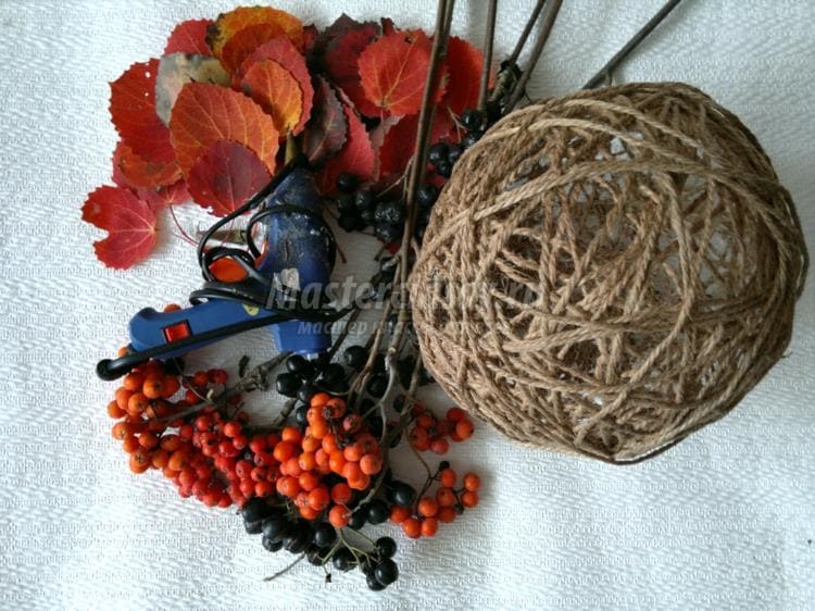 Теперь нужно надуть букет из шаров. Возьмите 16 воздушных шариков ассорти Осенние листья, надуйте их гелием и привяжите к каждому шарику ленту для шариков шириной 0,5мм не меньше около 1,5 м. Для того, чтобы букет был именно такой формы, есть небольшая хитрость – шары в букет подвязываются тройками.