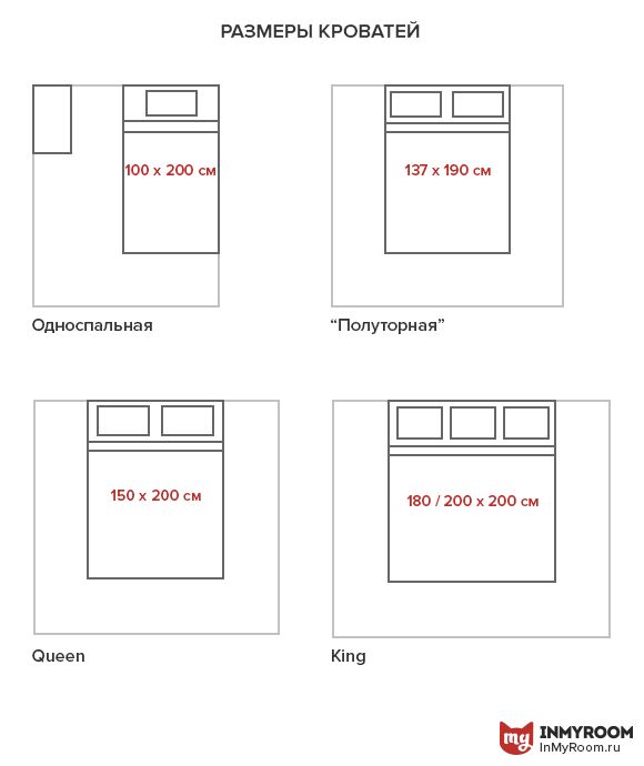 Кстати говоря, минимальная длина односпальных, двуспальных и полуторных кроватей одинакова. Ее расчет очень прост. Рост человека + 100 – 130 мм.