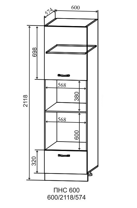Пенал с духовым шкафом и двумя отсеками для хранения