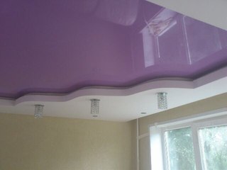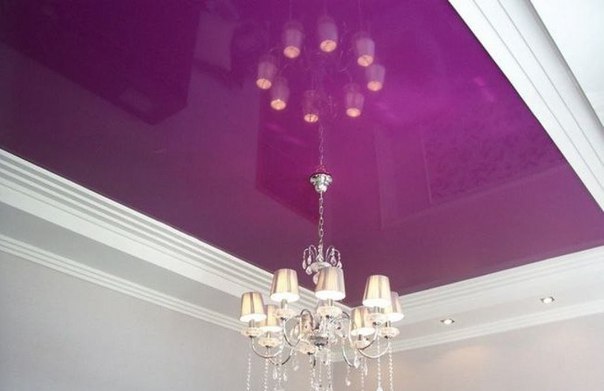 Благодаря разнообразию строительных технологий можно выполнить несколько вариантов потолочных покрытий. Глянцевый натяжной потолок отразит свет и расширит объем помещения. Окрашенная поверхность раскроет глубину сиреневого оттенка и его бархатистость.