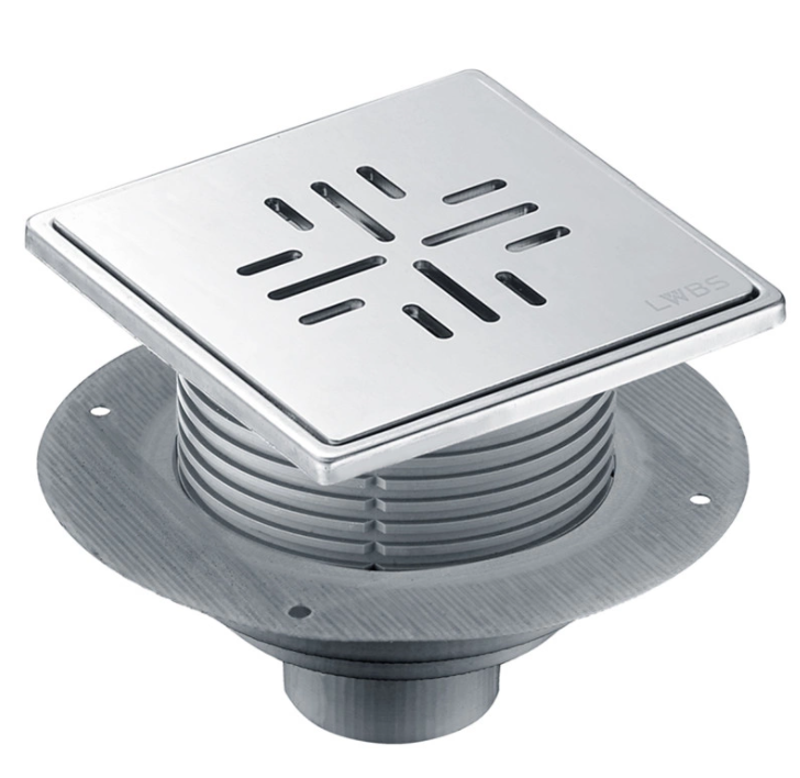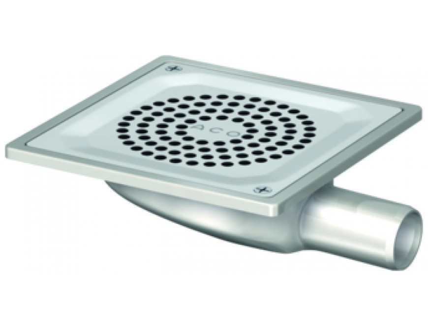 Размер решетки варьируется: 10х10, 15х15 и 20х20 см.  От диаметра трубы, выхода и размера решетки напрямую зависит пропускная способность трапа.