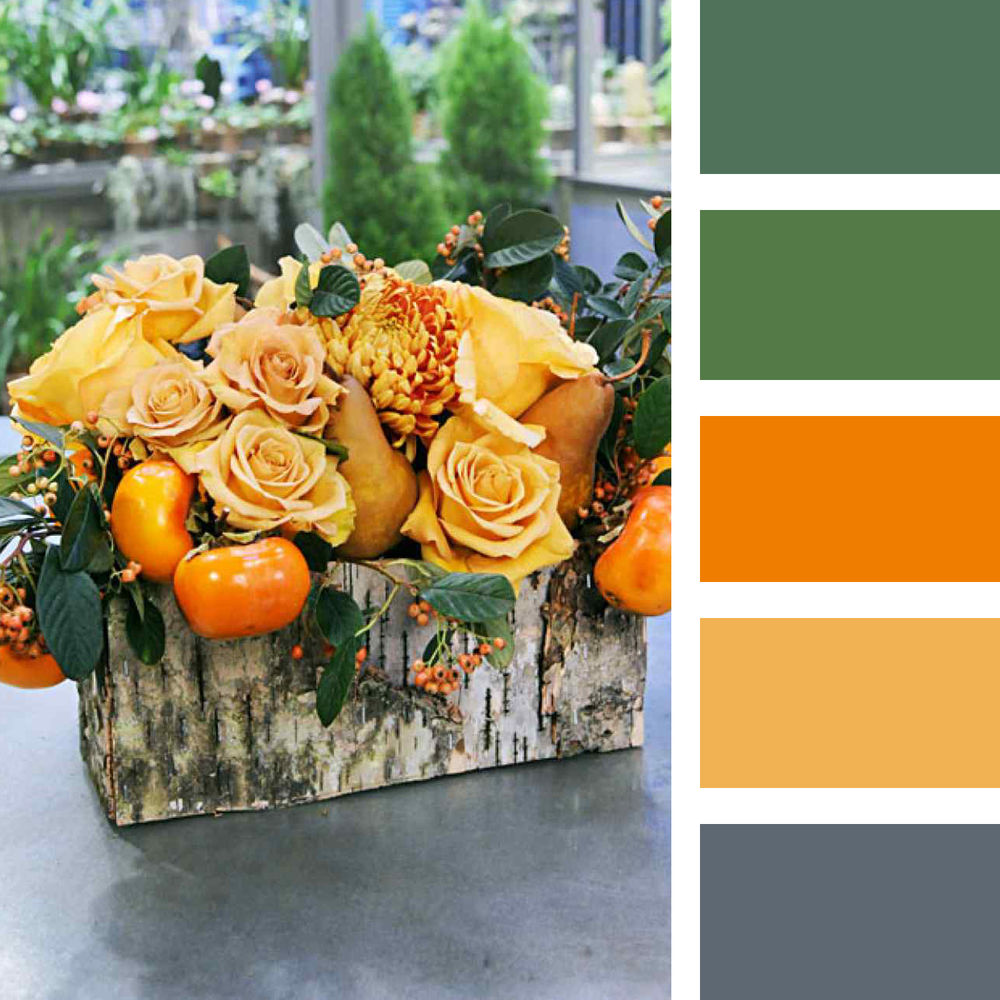 Это довольно рискованное и смелое сочетание, не каждый решится прибегнуть к нему. Природа словно сама подсказала такое сочетание — плод апельсина в окружении молодой листвы. Данный контраст смотрится свежо и ярко, однако стоит с большой осторожностью сочетать данные тона. Лучше использовать темно-зеленые, оливковые. Прекрасно выглядит союз оранжевого с холодными зелеными оттенками (малахитовый, мятный изумрудный), так основной оттенок смотрится более выразительно.