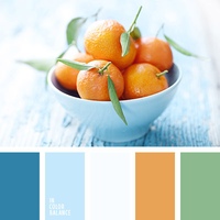 Сочетание оранжевого и голубого подходит не всем, это смелый подбор палитры. Напоминает контраст горячего песка на пляже и небесно-голубого океана. Эти оттенки составляют идеальный летний дуэт, который смотрится свежо и дерзко одновременно.
