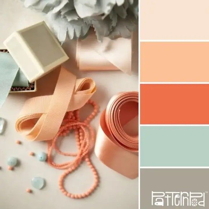 Персиковый и зелено-синий — стильная, свежая и утонченная пара.