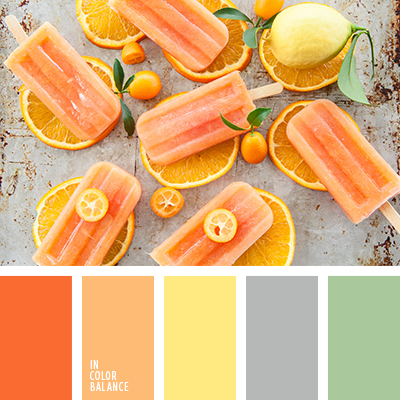 Так светлый цвет с оранжевым подтоном сохраняет свою теплую гамму в сочетании или создает яркий тепловой контраст с синим, лиловым, изумрудным цветами.