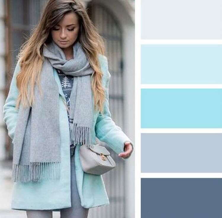 Но на практике можно увидеть, как и «весне», и «зиме» идут чистые бело-голубые и светло-голубые тона. А «лету» и «осени» сложные серо-голубые и зелено-голубые (приглушенные оттенки бирюзового). При таком распределении сочетания будут иметь ограничения.