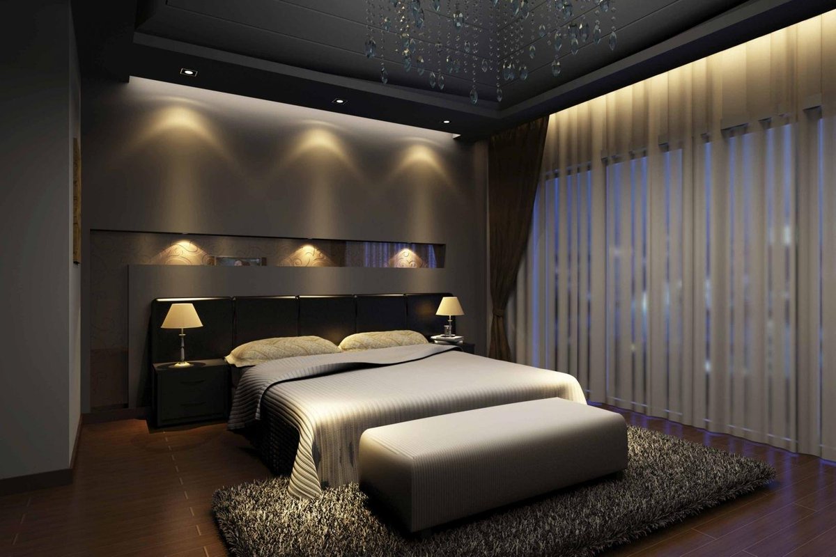 Различные виды освещения в интерьере спальни