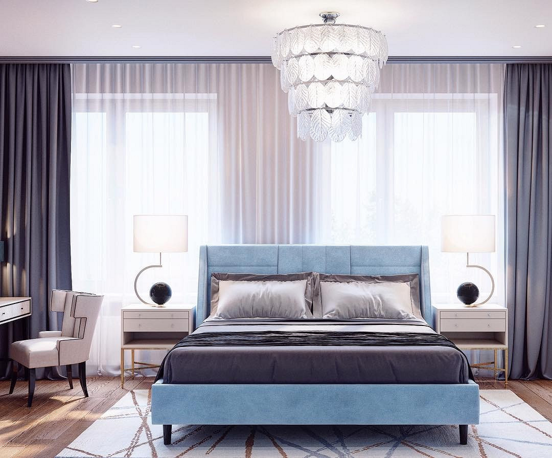 Голубая спальня — 75 фото вариантов оформления нежно-голубой спальни