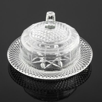 Стеклянная масленница с крышкой Клетка, маслёнка стеклянная