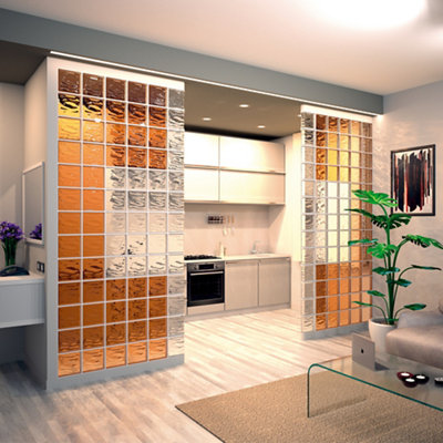 На сегодняшний день существует большое количество стеклоблоков разной высоты и ширины. Чаще всего можно встретить размеры от 190х190х80 мм. Не стоит загромождать небольшую комнату слишком крупными перегородками, а масштабное пространство заполнять мелкими. В случае с декорированием должна соблюдаться визуальная гармония комнаты и материала декорирования.