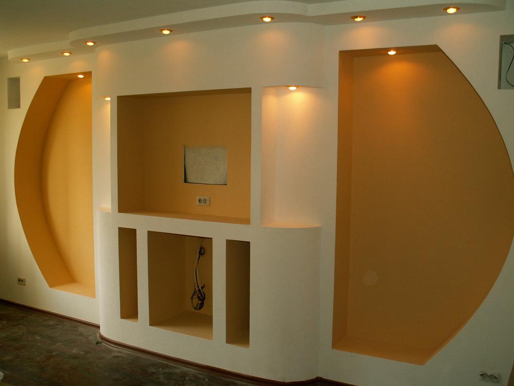 Декоративные стенки из гипсокартона под телевизор в зале своими руками: фото дизайна интерьера
