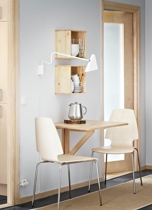 Откидные обеденные столы для маленькой кухни могут стать идеально подходящей мебелью. По своему принципу и назначению они довольно схожи с моделями-трансформерами.
