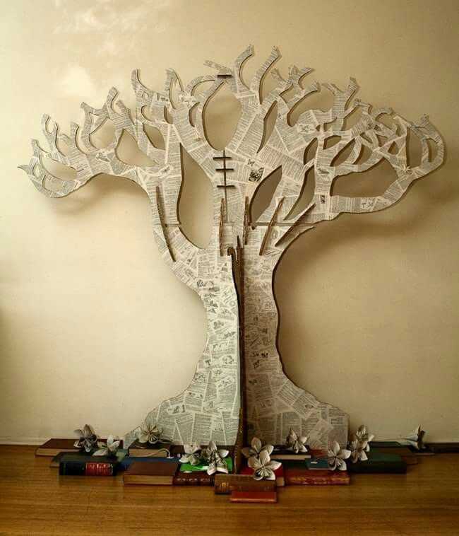 Бумажную фигурку дерева можно изготовить для использования в качестве украшения, подарка или ради собственного развлечения. Такое дерево может быть сделано из картона, газеты или из коричневых бумажных упаковочных пакетов. Потом вы сможете использовать его в качестве главного украшения стола на одной из очередных вечеринок.