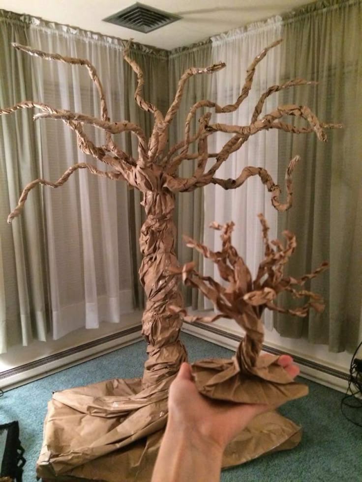 Создание старого дерева из коричневого бумажного упаковочного пакета
