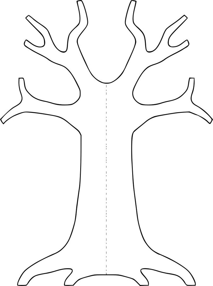 Вырежьте дерево. Вырезать дерево необходимо из сложенного картона, чтобы вторая его половина была зеркальным отражением первой половины дерева с центральной осью, расположенной по сгибу.