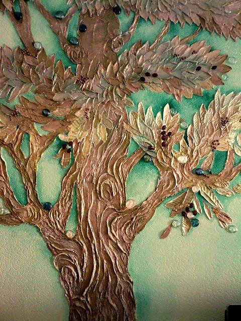 - Листья или ствол дерева можно чем-нибудь украсить или же прикрепить к дереву небольшое птичье гнездо.