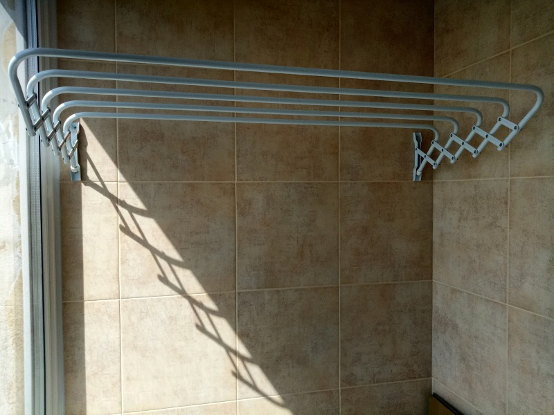 Некоторые подвиды крепят на стене большого балкона. Их производят в различных формах: компактные, словно держатели для полотенец, или многоярусные, выдерживающие до двадцати килограмм мокрого белья.
