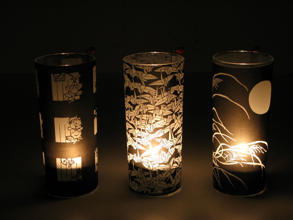 Осталось поместить свечу или светодиод в банку, поставить банку внутрь бумажного цилиндра, выключить свет и зажечь огни.