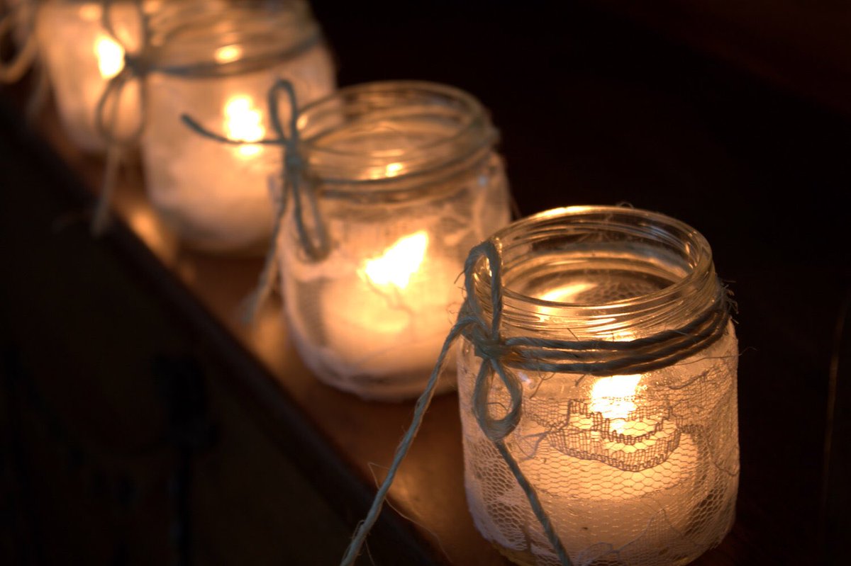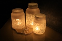 Чтобы сделать светодиодный стеклянный светильник, а не свечной, приклейте во внутреннюю часть банки конструкцию, которая работает на батарейках.