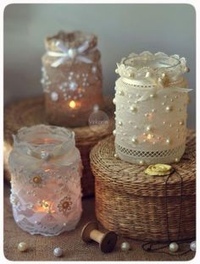 Невероятно изысканно будет смотреться подсвечник, если небольшой бокал обклеить красивым кружевом или ажурной салфеткой.