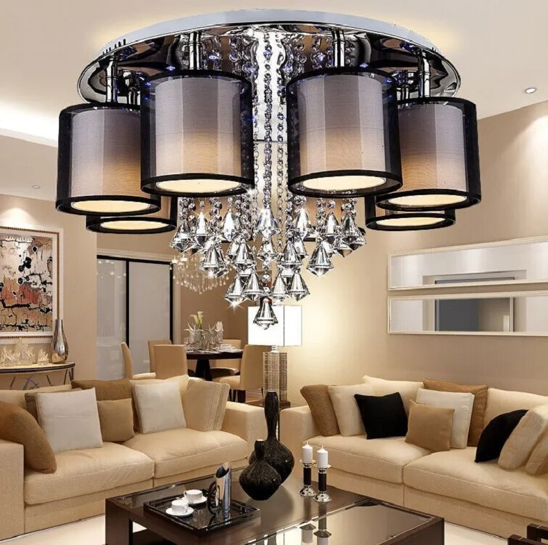 Люстры типа фьюжн, гармоничны в гостиной электорстиля.