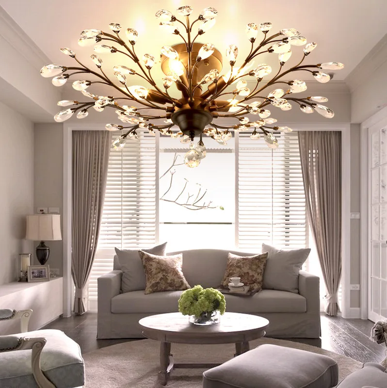 Изысканный дизайн хрустальных люстр не оставит равнодушными поклонников дворцовых интерьеров, а мерцающие кристаллы, парящие в воздухе, прекрасно впишутся в гостиную, оформленную в современном стиле.