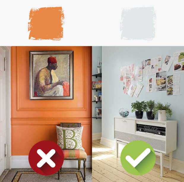 В чистом виде крайне агрессивная комбинация оттенков. Чтобы от такой яркости не уставали глаза, а спокойное настроение не сменялось раздражительностью, один из цветов должен быть приглушённым или более светлым.