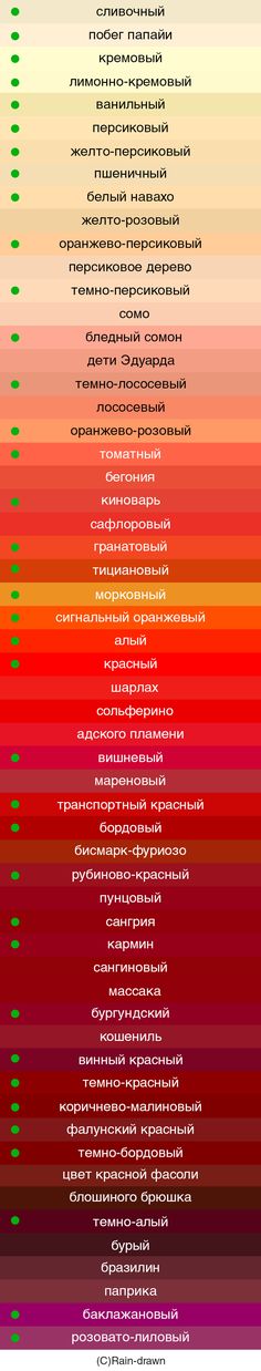 Также есть нейтральные оттенки красного: алый, кровавый красный, арбузный, кардинал.