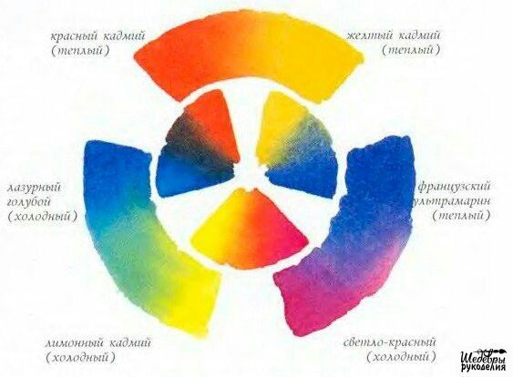 Запомните – тёплые оттенки постепенно переходят в оранжевый (красный + жёлтый = оранжевый), холодные – в фиолетовый (красный + синий = фиолетовый).