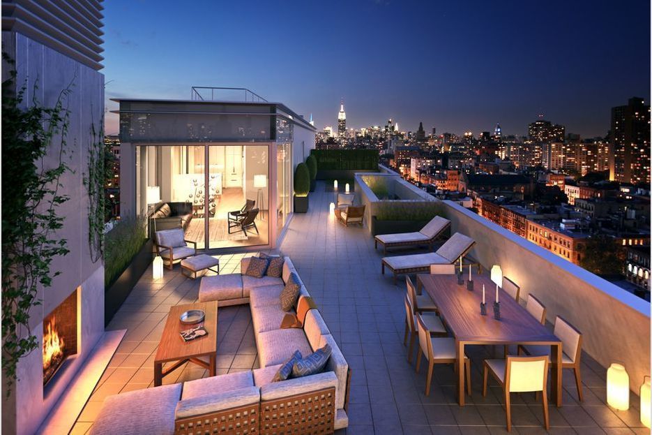 Многоэтажная квартира имеет два балкона и просторную террасу , которая разделена на столовую и гостиную, рассчитанную на восемь человек.