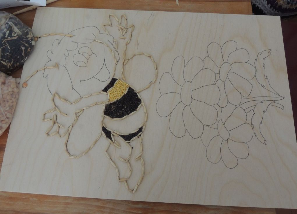 понравились мозаичные работы из такого природного материала как крупы и зерна.