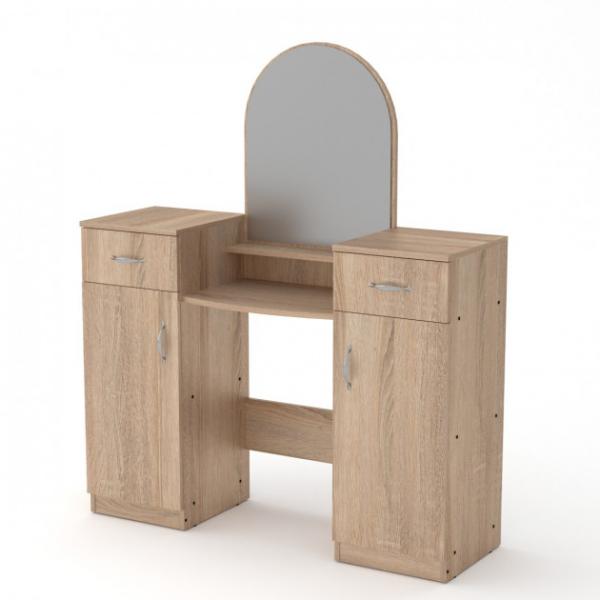 КомпактныйСтандартБольшойТуалетный столик с большой столешницей используется не только для хранения косметики. На нем женщина может расставить шкатулки для драгоценностей, поставить любимую вазу, фотографию дорогого человека или цветочный горшок.