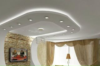 - Гостиная – самое популярное место для установки подвесных конструкций из гипсокартона.