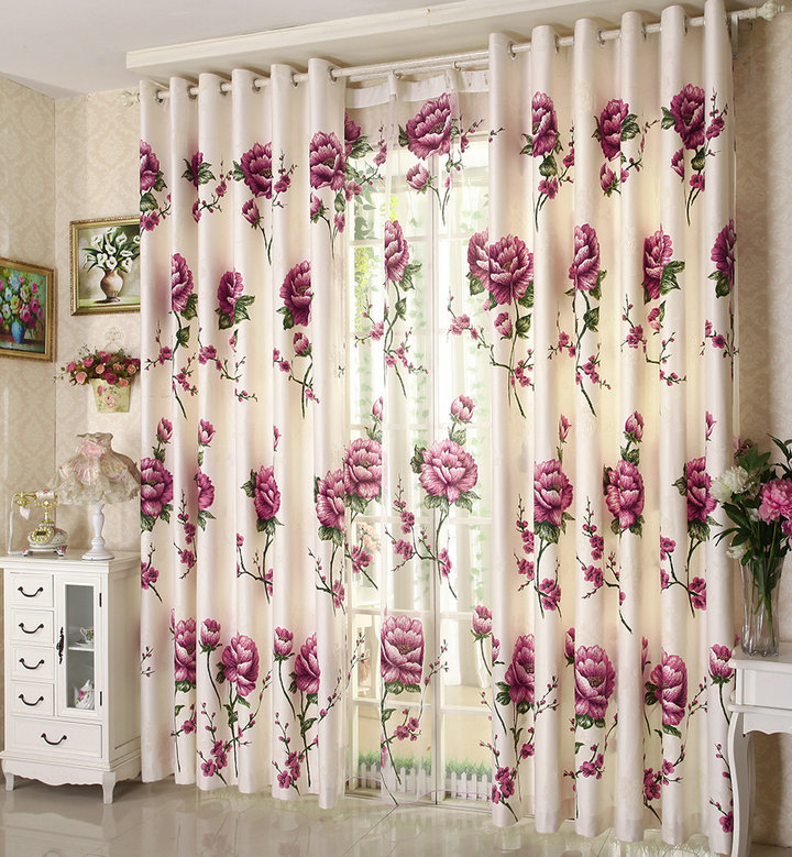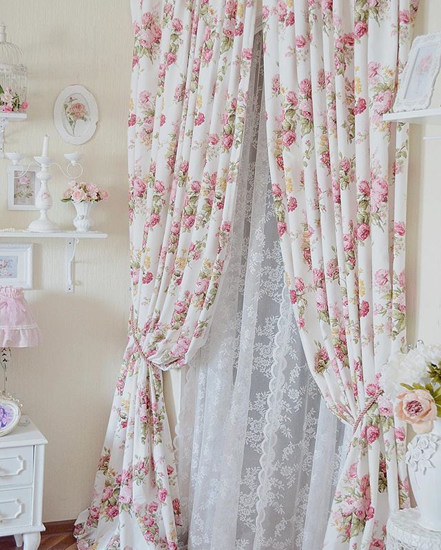 В классическом варианте используется светлый тюль, вышитые занавески с кружевами, а также полотно с цветами.
